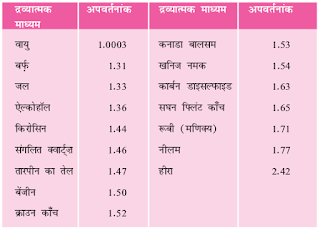 विभिन्न माध्यमों का अपवर्तनांक मान